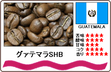 芳醇な香りに加えて豊かな酸味やコクのあるグァテマラコーヒー。苦味と酸味のバランスが絶妙で、軽やかな味わいと程よい香りが特長です。メール便発送可能グァテマラSHB生豆 価格: 420円 レビュー評価:0.0 レビュー数:0 内 容 コーヒー生豆100g 賞味期限 1年(焙煎前) 保存方法 冷暗所で保存 原材料 グァテマラ産コーヒー豆 商品説明 グァテマラは、大部分が山間地という地理的条件と寒暖の差が大きく、また豊かな降雨量と火山に囲まれているため、肥沃な火山灰土壌でミネラルを多く含んでいます。このようなコーヒー栽培に恵まれた条件のもとで、良質のコーヒーが栽培されることで有名です。SHBは標高1350m以上の高地でとれた硬質豆で、最高級グレードです。酸味、甘味、コク、苦味と調和のとれた上質の味は、他のコーヒーとの相性がよく、ブレンドとしてもよく使われますが、芳醇な香りに加えて豊かな酸味やコクのあるグァテマラコー Supported by 楽天ウェブサービス |